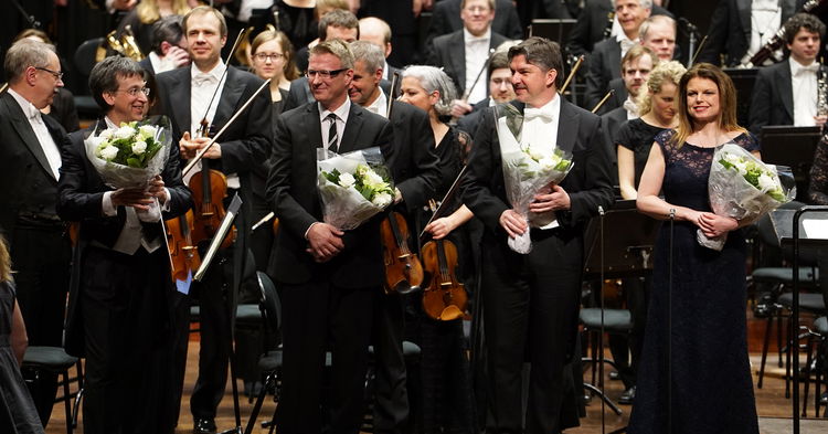 Eivind Aadland, choir conductor Øystein Fevang, Thomas E. Bauer and Ann-Helen Moen after the concert. (All photos: Fred-Olav Vatne/Oslo Phil)